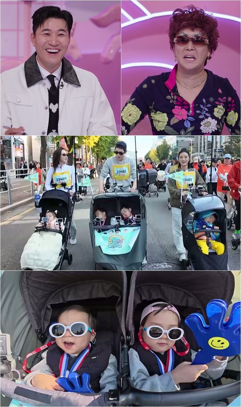 은우와 정우가 박수를 치며 아빠 김준호에 열정적인 응원을 보내자 김종민은 “저러면 힘나지”라며 미소를 터뜨린다. 시우 역시 엄마 우혜림이 지칠 때마다 “유 캔 두잇!”이라며 엄마를 힘껏 응원해 보는 이들을 흐뭇하게 만든다. 또한 딸 엘라를 어깨에 올리고 스쿼트를 할 정도로 남다른 체력을 자랑하는 김윤지가 생후 15개월 엘라를 유모차에 태우고 7km 완주에 성공할 수 있을지 궁금증을 자아낸다.