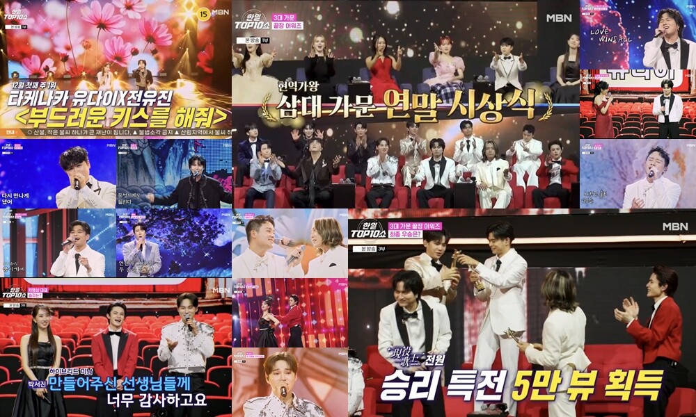 [시사투데이 = 김현일 기자] ‘한일톱텐쇼’가 ‘현역가왕1’, ‘현역가왕2’, ‘현역가왕 재팬’ 주역들이 총출동한 2025년 연말 특집 ‘현역 3대 가문 끝장 어워즈’로 초대형 감동, 웃음, 열광을 터트렸다.