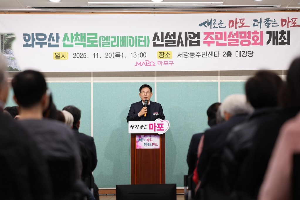 [시사투데이 = 이용운 기자] 마포구(구청장 박강수)는 지난 20일, 마포주민을 대상으로 와우산 산책로(엘리베이터) 신설사업을 위한 설명회를 개최했다.