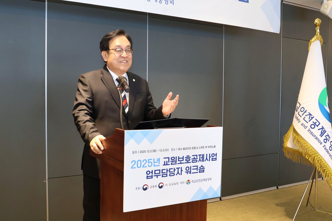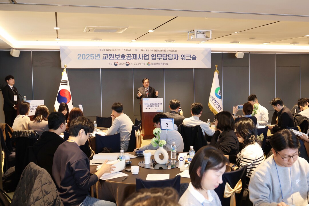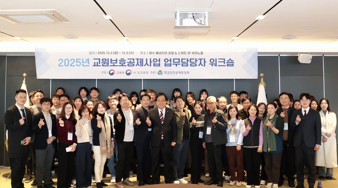 [시사투데이 = 전해원 기자] 학교안전공제중앙회(이사장 정훈, 이하‘공제중앙회’)는 교원의 권익 보호와 안전한 교육환경 조성을 위해 교육부와 함께 12월 2일부터 3일까지 여수 베네치아호텔&스위트에서 「2025년 교원보호공제사업 업무담당자 워크숍」을 개최했다.
