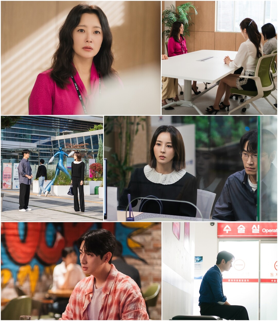 지난 6회에서 조나정(김희선 분)은 카페에서 눈물을 흘리는 김선민(서은영 분)과 마주 앉아 있는 남편 노원빈(윤박 분)을 목격하고 의구심을 드러냈지만, 노원빈은 “설마 그 여자랑 뭐 특별한 관계라도 되는 거야?”라는 조나정에게 “남편 좀 믿어라!”라는 말로 선을 그었다. 하지만 조나정이 뭔가 의미심장한 이야기를 전하는 쇼호스트들 앞에서 얼음처럼 굳은 표정으로 충격을 삼키는 모습이 포착된 것. 조나정이 듣게 된 뜻밖의 폭로는 어떤 내용일지, 불길한 면담 현장이 궁금증을 모은다.