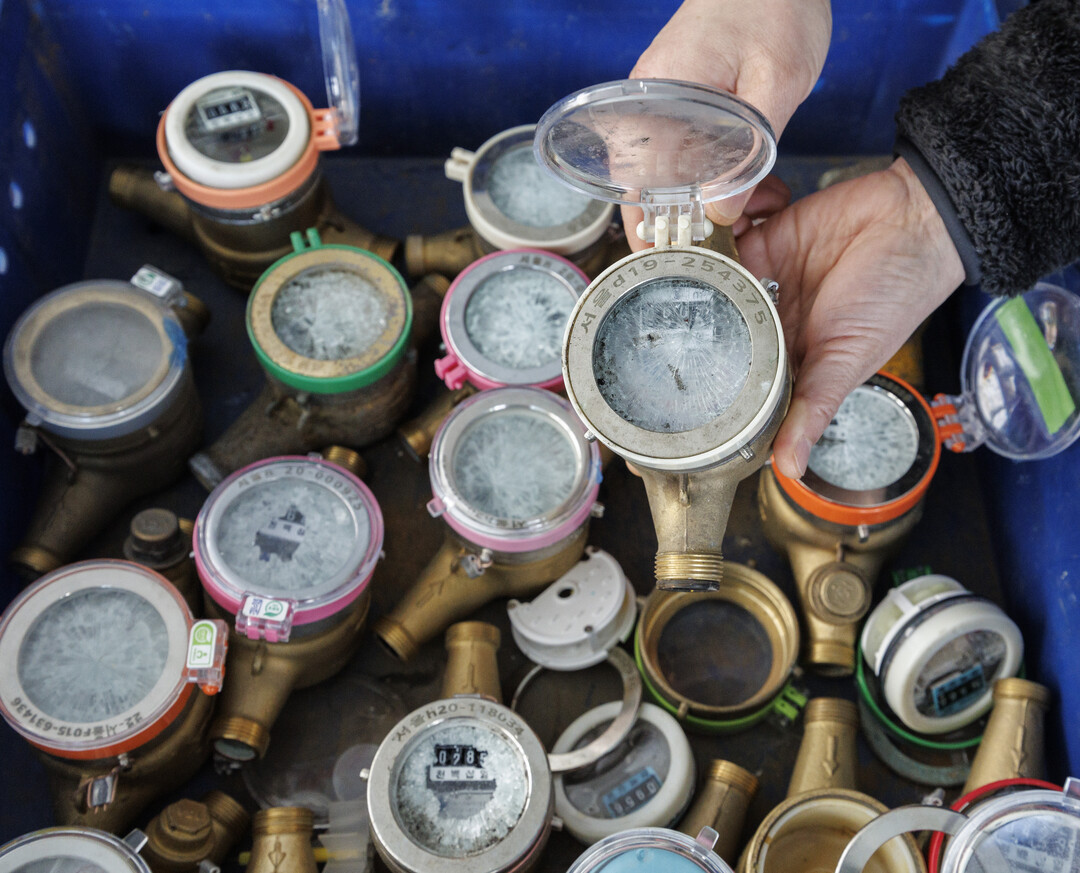 수도계량기 지시부가 깨지거나 부풀어 오르는 등 동파 의심 증상이 있으면 계량기 파손이나 누수 사고로 이어질 수 있어 주의해야 한다. 120다산콜재단, 관할 수도사업소, 아리수 사이버고객센터로 신고하면 된다.
