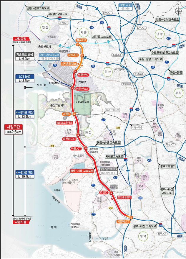 2013년부터 운영되고 있는 평택-시흥 민자고속도로의 확장이 완료되면 수도권 서남부 지역의 교통정체가 개선되고 인근지역 개발로 인한 교통수요 증가와 인천항, 평택당진항의 산업물동량 변화에 선제적인 대응이 가능할 것으로 기대된다.