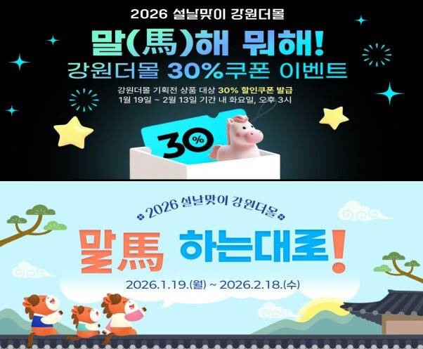 [시사투데이 김준 기자] 강원특별자치도 대표 온라인 쇼핑몰 강원더물이 2026년 병오년 붉은 말의 해를 맞아 설맞이 기획전 '말(馬)하는 대로'를 개최한다고 20일 밝혔다.