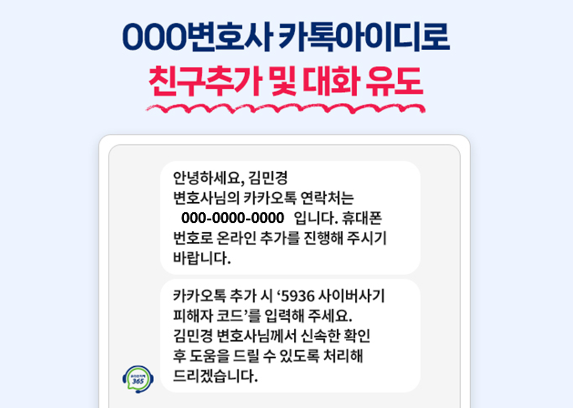 주요 사기수법은 SNS에서 365센터 사칭 계정을 통해 피해상담 광고를 올려 이용자들을 유인한 후 피해자가 상담요청을 하면 365센터 소속 변호사를 사칭한 특정인의 연락처를 알려주며 피해자에게 접근한다.