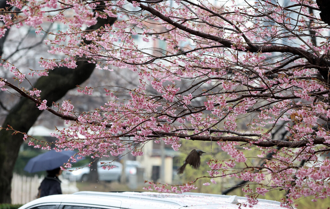 부산은 새벽부터 강한 바람과 함께 봄비치고는 제법 많은 양의 비가 내렸다.
