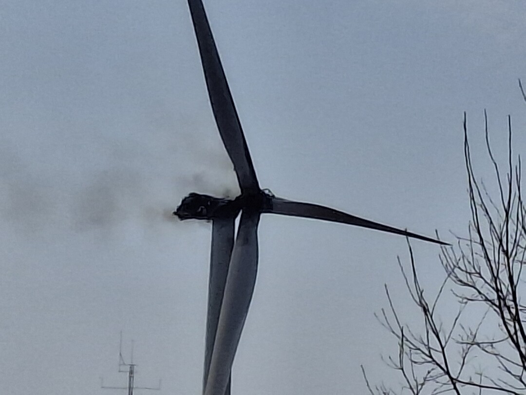 당국은 풍력발전기 날개 잔해 등 낙하 우려로 인근 도로를 통제하고 있다.