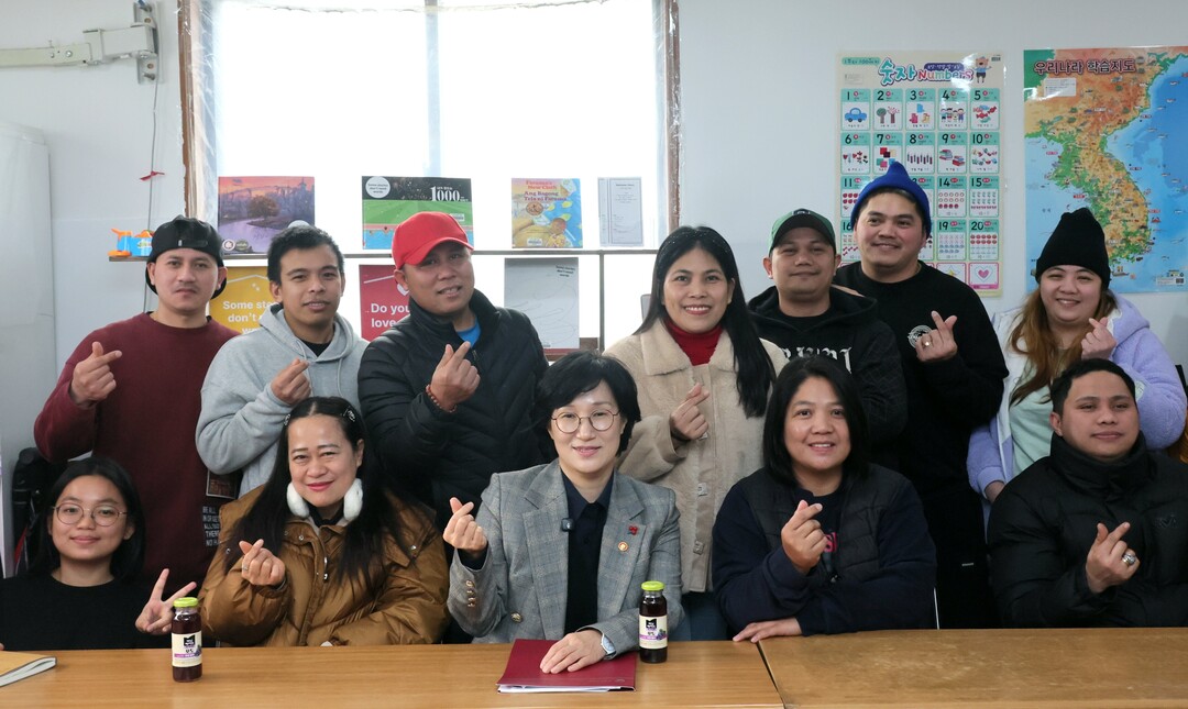 [시사투데이 = 이지연 기자] 원민경 성평등가족부장관이 15일 오후 경기도 용인시에 위치한 '(사)모두를 위한 이주인권문화센터' 현장을 방문해 외국인 계절근로자들로부터 애로사항을 청취하고 함께 기념촬영을 하고 있다.
