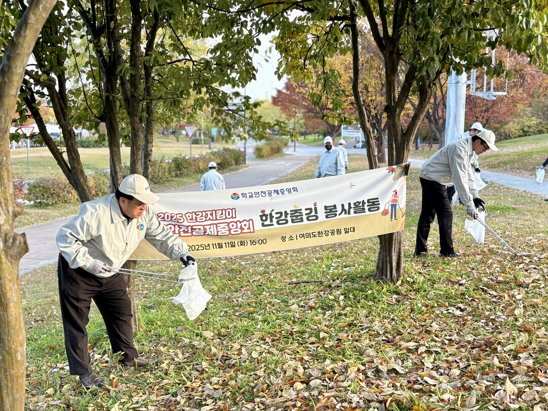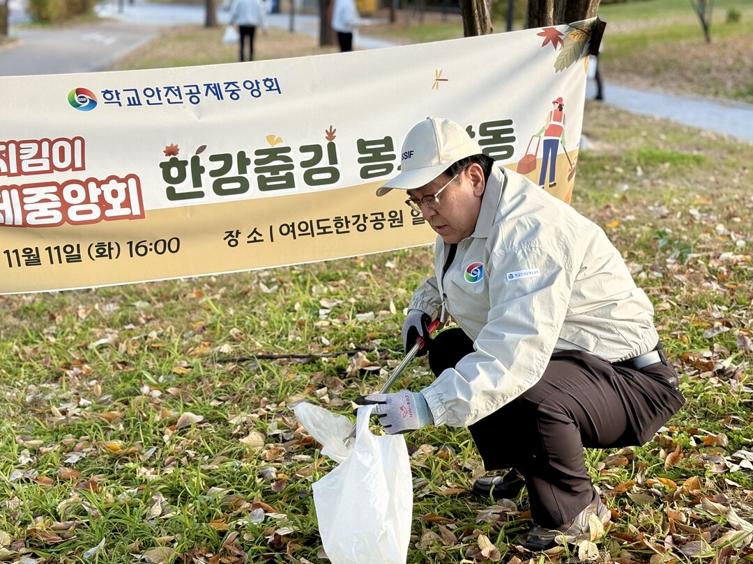 [시사투데이 = 전해원 기자] 학교안전공제중앙회(이하 공제중앙회, 이사장 정훈)은 11월 11일 서울 여의도한강공원 일대에서 임직원들과 함께하는 2025 한강지킴이 줍깅(조깅하며 쓰레기를 줍는 활동)활동(2차)을 진행했다.