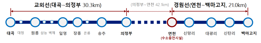 현재 경원선(연천~백마고지)과 교외선(대곡~의정부)은 디젤열차가 운행(경원선 예정)하고 있어 소음과 매연 등 취약점을 고려할 경우 친환경 수소열차 전환 수요가 높은 노선이다.