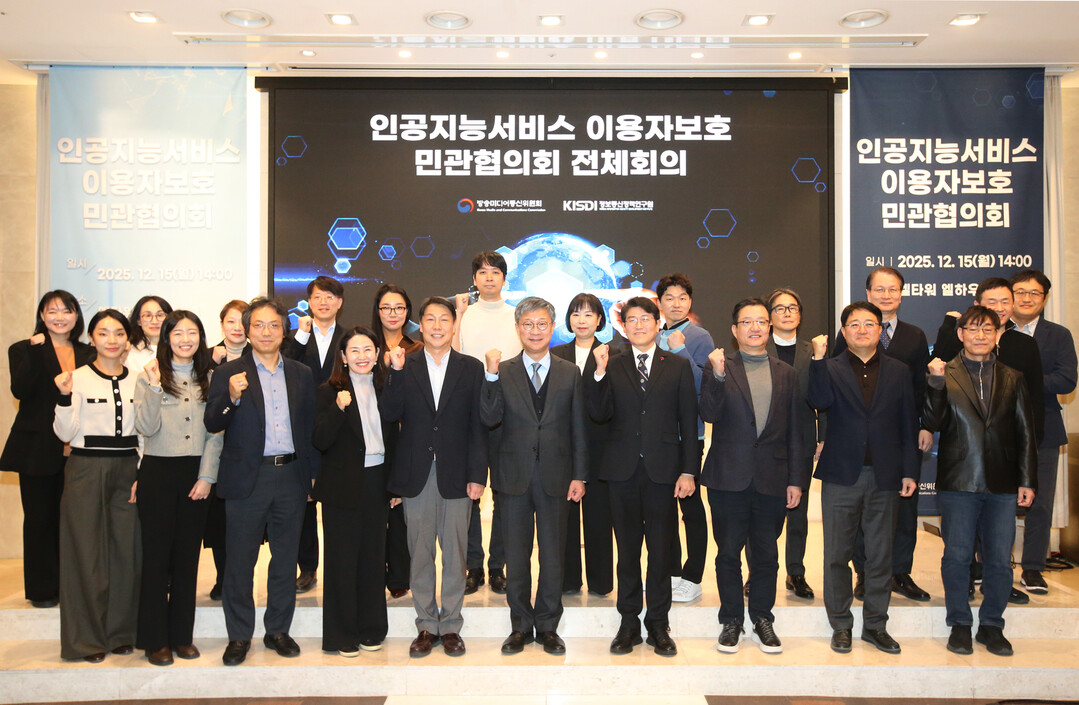 [시사투데이 = 박미라 기자] 류신환 방송미디어통신위원회 위원장 직무대행(앞줄 오른쪽에서 네번째)과 이원우 인공지능서비스 이용자보호 민관협의회 위원장(앞줄 오른쪽에서 다섯번째)이 15일 서울에서 방송·미디어·통신 분야 인공지능 서비스의 현실적인 투명성 확보 수준 및 필요성 등에 대한 논의를 위해 열린 '인공지능서비스 이용자보호 민관협의회 제4차 회의'에서 참석자들과 기념촬영을 하고 있다.