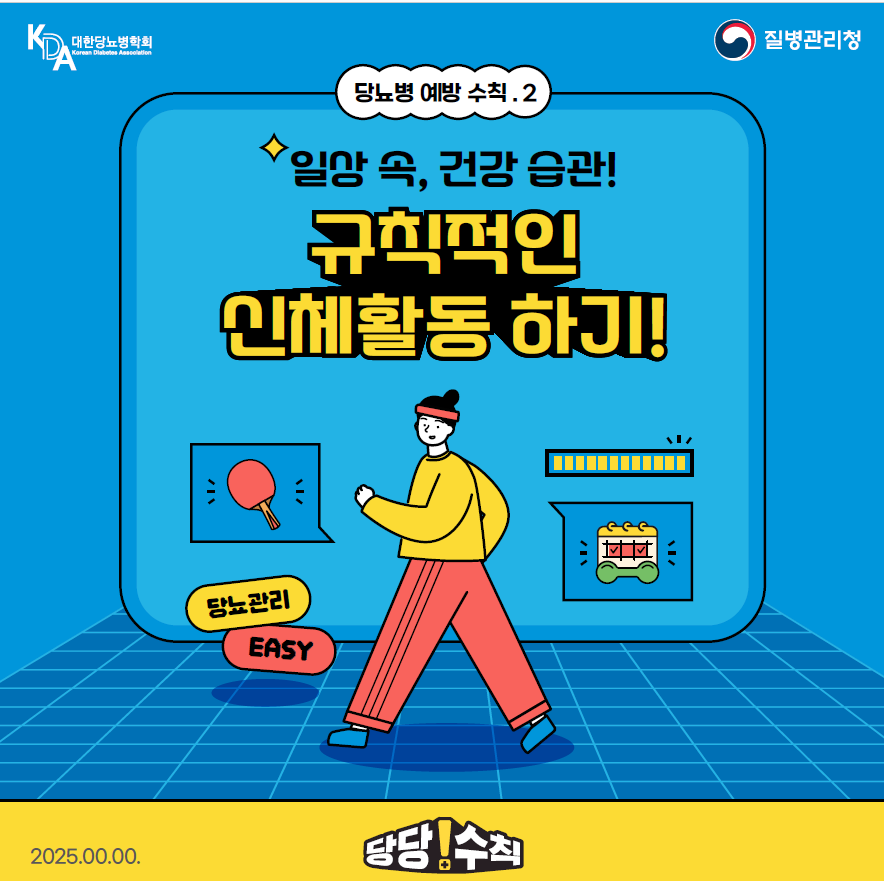 질병관리청은 이번 세계 당뇨병의 날에 맞춰 생활 속 당뇨병 예방·관리 및 자가관리 제고를 위해 6대 당뇨병 예방관리수칙과 수칙별 실천지침을 마련하고 포스터, 리플릿, 카드뉴스, 쇼츠영상으로 각각 제작 배포한다.