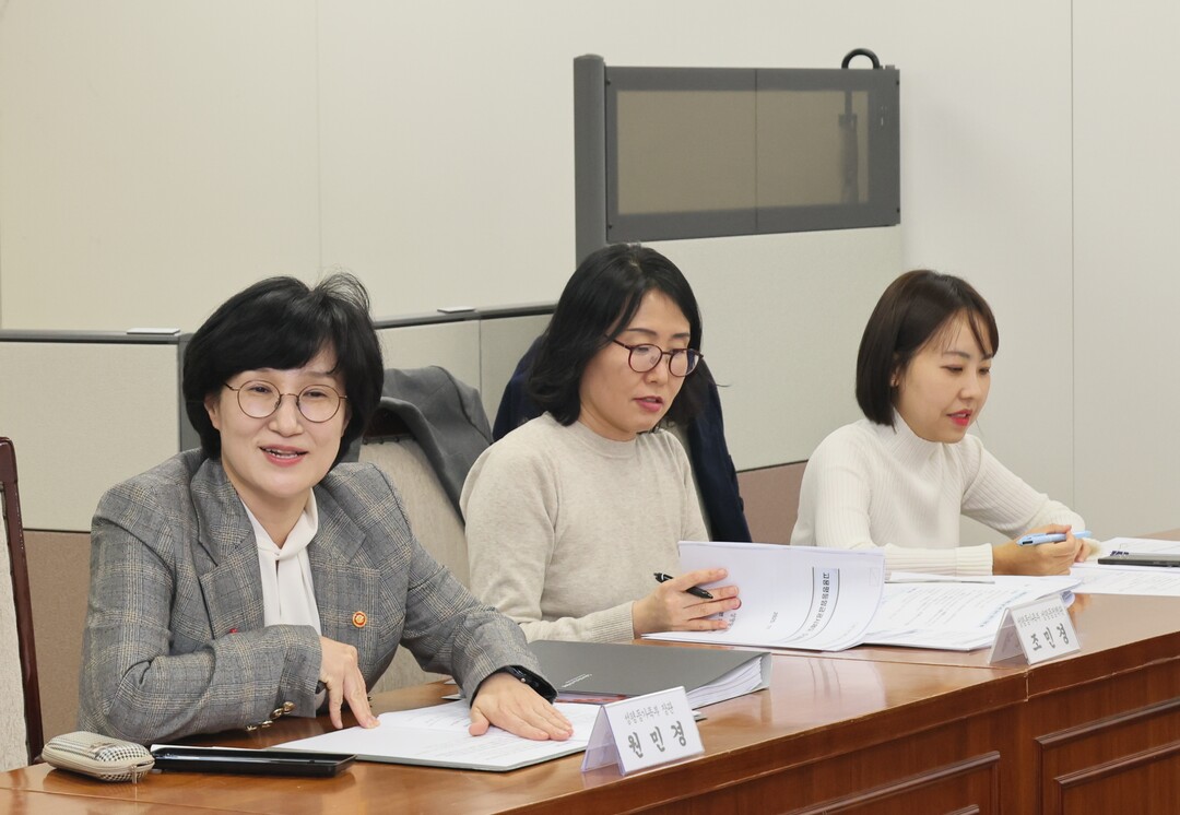 [시사투데이 = 이지혜 기자] 원민경 성평등가족부장관(왼쪽)이 26일 오후 정부서울청사에서 열린 고용평등임금공시제 추진 관련 전문가 4차 회의에서 고용평등임금공시제 추진 방안에 대해 관계자들과 논의하고 있다.