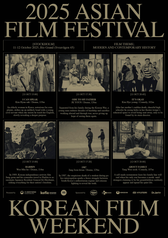 아시아영화제와 협력해 열리는 이번 영화제는 광복 80주년을 기념해 한국 근현대사를 주제로 꾸며졌다. 상영작은 <1987>, <서울의 봄>, <아이 캔 스피크>, <국제시장>, <하얼빈> 등 시대적 맥락과 역사적 사건을 담아낸 작품들이다.