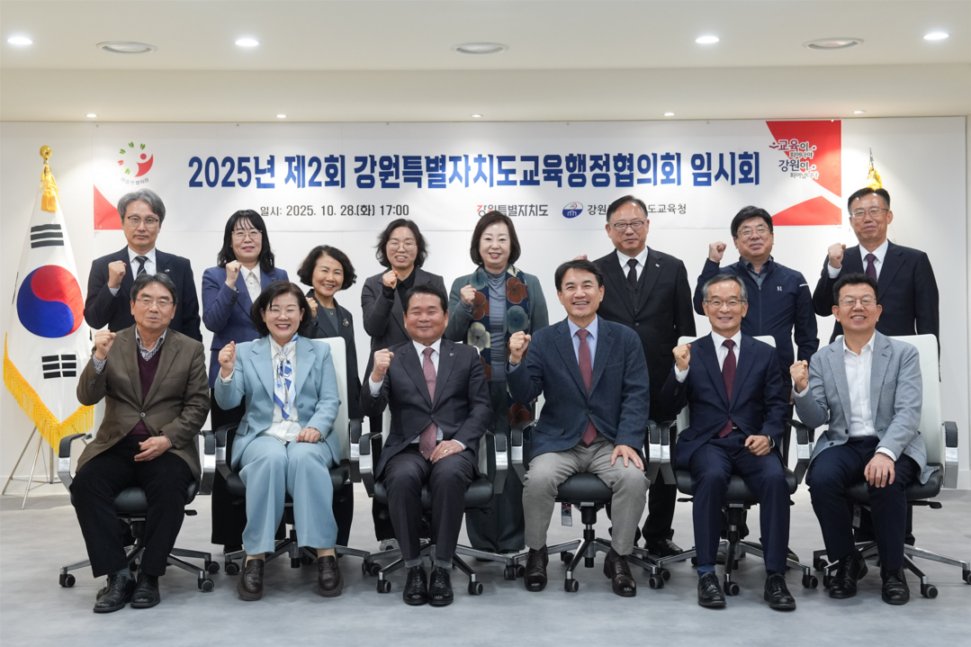 강원 신경호 교육감은 “인공지능(AI)과 학령인구 감소, 지역소멸 등 복합적인 과제를 해결하기 위해 교육청의 전문성과 도청의 행정 역량이 유기적으로 연결될 때 모든 아이들에게 공정한 출발선을 제공할 수 있다”고 했다.