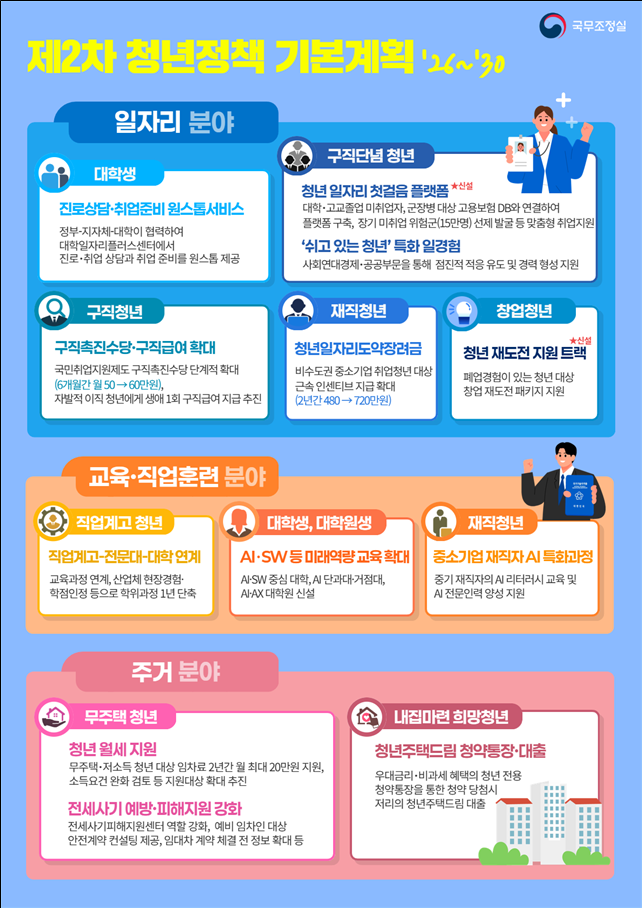 대학생을 위한 ‘AI·SW 중심대학’, 군장병을 위한 ‘全장병 AI 온라인 교육’, 대학원생을 위한 ‘AI·AX 대학원’, 구직자를 위한 ‘K-디지털 트레이닝’, 재직자를 위한 ‘AI 특화 과정’ 등 맞춤형 교육을 통해 5년간 200만명 이상 청년에게 미래 역량 개발 기회를 제공할 계획이다.