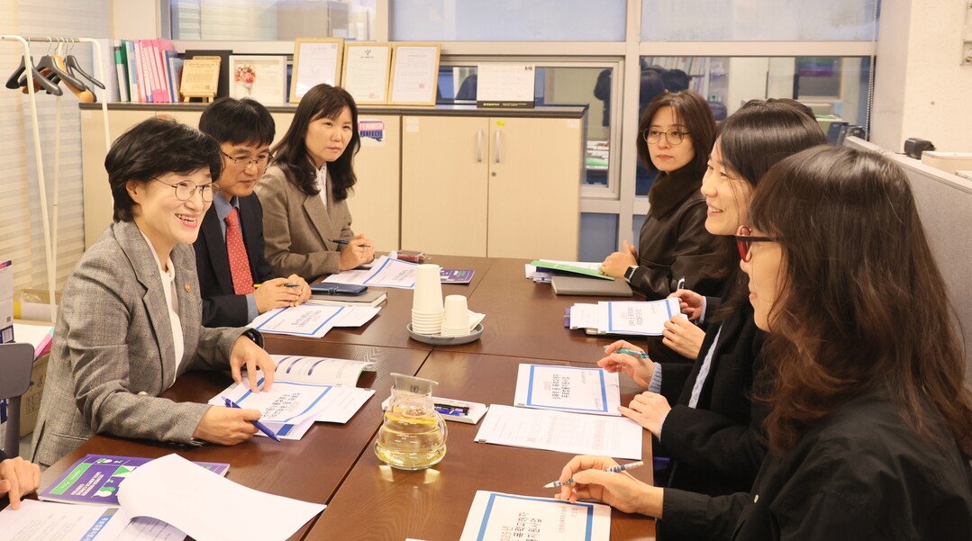 [시사투데이 = 이한별 기자] 원민경 성평등가족부 장관(왼쪽)이 28일 오후 한국성폭력위기센터에서 폭력피해자 무료법률지원사업 현황을 점검하고 현장의견을 청취하고 있다.