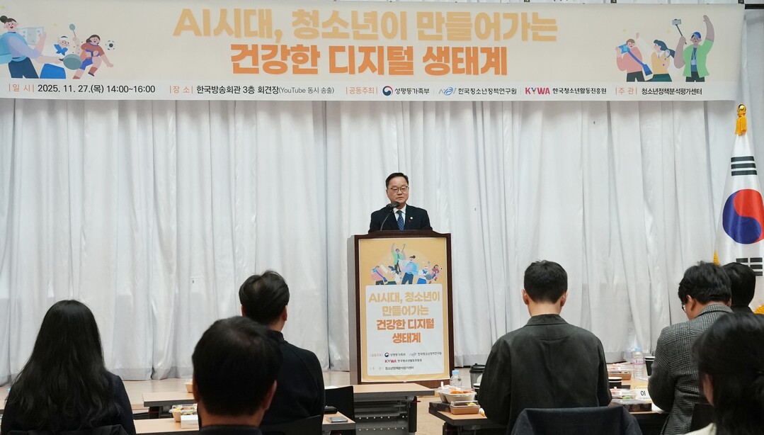 [시사투데이 = 이지연 기자] 정구창 성평등가족부차관이 27일 오후 한국방송회관에서 개최된 'AI시대, 청소년이 만들어가는 건강한 디지털 생태계' 정책포럼에서 인사말을 하고 있다.
