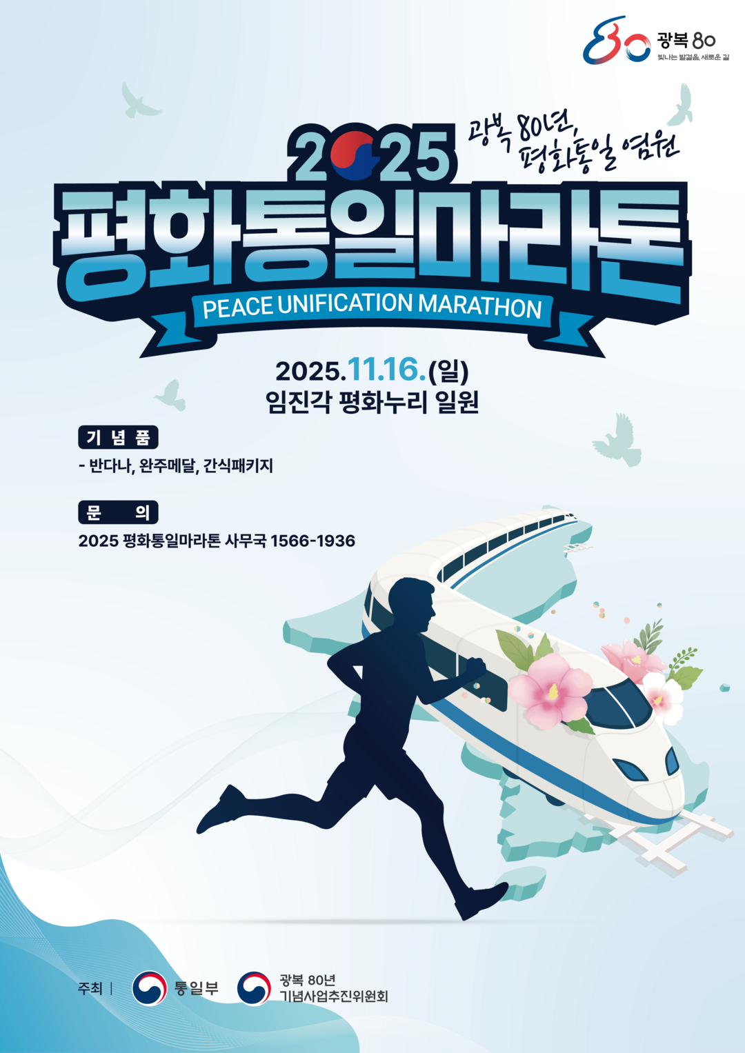 [시사투데이 = 이윤지 기자] 통일부와 광복 80년 기념사업추진위원회는 16일 파주 임진각 평화누리 일원에서 ‘광복 80년, 우리가 만드는 평화’를 주제로 「2025 평화통일마라톤」을 개최한다.