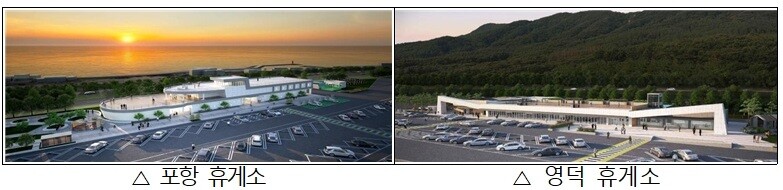 동해 해안 도로의 특성을 활용해 바다가 보이는 지점에 포항휴게소와 영덕휴게소 2개소를 조성하고 각각 영일만의 선박, 영덕대게를 형상화하는 건축물도 조성된다.