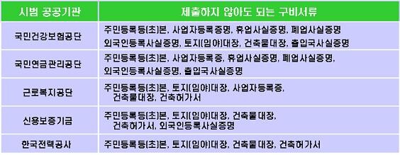 ▲ 국민연금 등 5개 공공기관에서 주민등록등본 등 9종의 구비서류 안받아