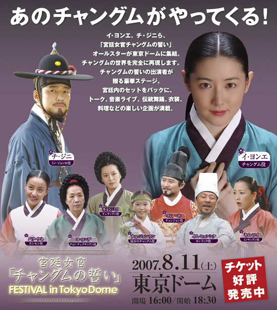 한국을 비롯 일본등 아시아 지역에서 선풍적인 인기를 누리고 있는 드라마 대장금의 열기를 이어가고 팬들의 성원에 보답하기위해 ‘드라마 대장금’을 주제로 음악, 무용, 영상, 그리고 출연진들과 팬들이 함께 “대장금 페스티벌” 이라는 새로운 형태의 드라마 콘텐츠가 8월 11일 도쿄돔에서 4만여명의 팬들이 참석하는 가운데 펼쳐지게 된다.
