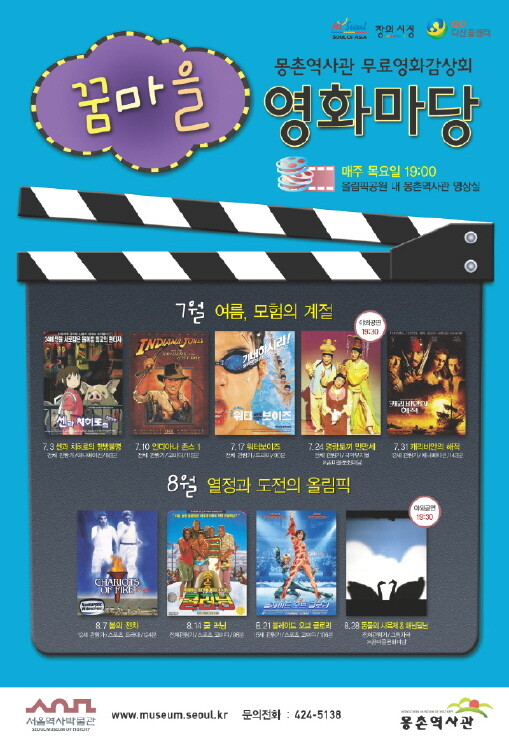 서울역사박물관 산하 몽촌역사관에서 7월 여름방학을 맞아 <여름, 모험의 계절>이라는 주제로 매주 목요일 오후 7시 무료 영화감상회를 연다.