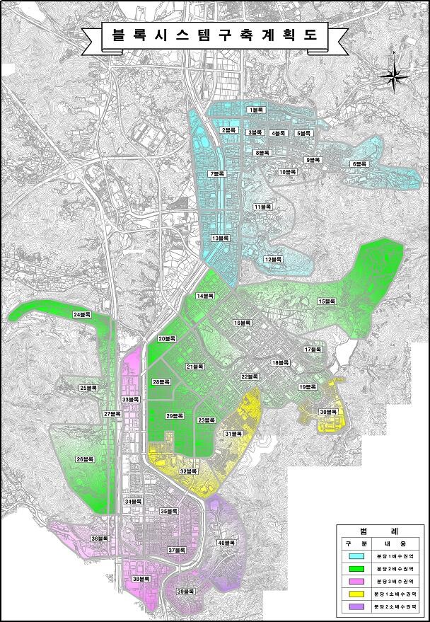 상수도관의 블록화는 상수도관망을 바둑판 모양의 블록형태로 구성해 블록별로 수량, 수질, 수압을 실시간 감시하고 유수율(물이 손실없이 가는 비율)을 분석하는 시스템으로 블록시스템이 구축되면 상수도관망 운영의 효율성 확보는 물론 보다 안정적으로 양질의 수돗물을 공급할 수 있게 된다.