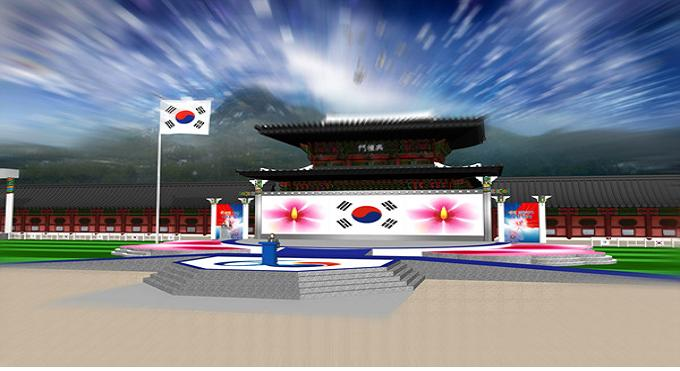 광화문 거리의 상부 전면을 차지하는 광화문(현재 복원공사 중)부근에는 무궁화 꽃이 활짝 핀 모습을 대형 조형물로 설치하여 ‘무궁화 꽃이 활짝 피었습니다’를 연출한다.
