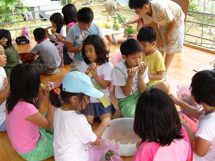 이날 농사체험학습장에 참여한 학생들은 자신이 직접 수확한 옥수수 쪄먹기와 국화 가꾸기·조롱박, 수세미, 색동호박 등 각종 열매가 주렁주렁 달린 자연 속에서 농작물을 가꾸고 수확하는 과정을 통해 협동정신과 남을 배려하는 마음을 배웠다.