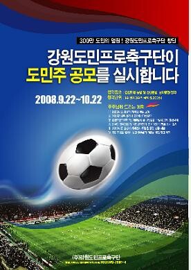 우리의 가슴을 뭉클하게 만들었던 2002년의 함성, 그때의 함성을 재현하기위해 강원도가 ‘강원도민 프로축구단 범도민 도민주 갖기 운동’을 실시한다.