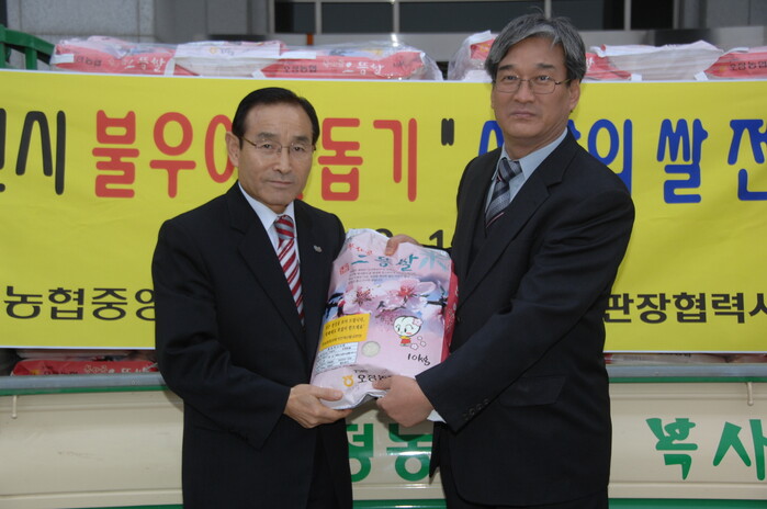 연말연시를 맞이해 각계각층에서 불우이웃돕기에 나서고 있다. 농협중앙회 부천축산물공판장은 지난 16일 관내에서 생산된 쌀 200포(10kg,480여만원상당)를 부천시에 기탁했다.