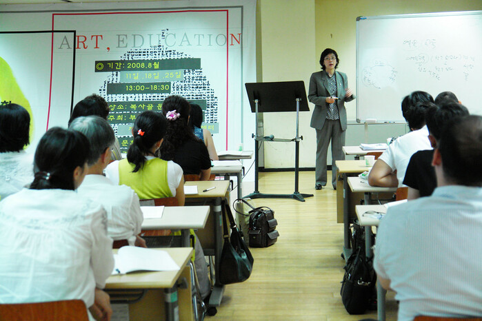 교육 내용은 ▲문화예술교육의 의미 ▲예술강사의 역할과 자세 ▲매개자로의 교과과정 구성 워크숍 ▲다양한 문화예술교육 시각 넓히기 ▲마음을 읽는 문화예술교육가 ▲효과적인 강의 구성 및 운영방법 등으로 강의와 체험형 워크숍을 진행한다.