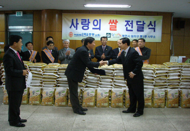 여의도순복음 중동교회는 2003년부터 현재까지 총 6회에 걸쳐 3천3백여만원 상당의 백미(20㎏) 519포, 백미(10㎏) 400포, 김치 30박스, 라면 100박스를 시에 기탁, 저소득층을 위한 이웃돕기 실천에 기여한 공로로 상을 받았다.