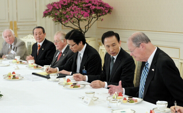 이명박 대통령은 19일 오후 청와대에서 미 의회 군사위 대표단을 접견했다.