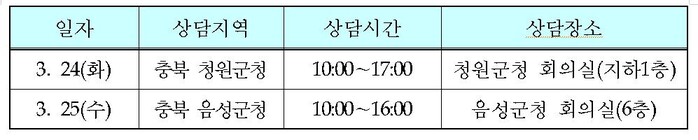 오는 24일과 25일에 충청북도 청원군청과 음성군청에서 고충민원 현장상담제도인 ‘이동신문고’를 운영한다.