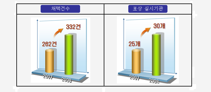 전체적으로 국민제안 운영실적은 중앙부처 제안채택건수는 2007년 262건에서 2008년 332건으로 늘어났고 대국민 포상 실시기관은 25개에서 30개 기관으로 확대되는 등 발전기반이 보다 폭넓게 마련되는 추세이다.