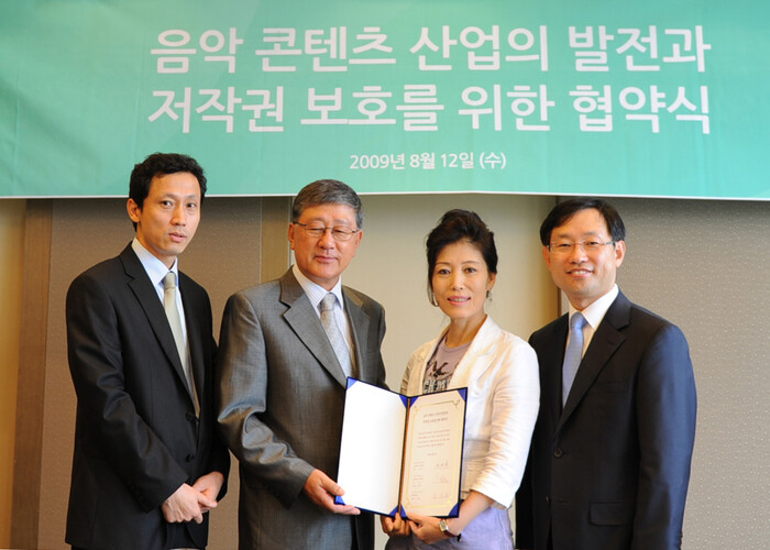 한국음악저작권협회(이하 음저협), 한국음악실연자연합회(이하 음실련)와 NHN㈜는 오늘 서울 프라자 호텔에서 음악 콘텐츠 산업의 발전 및 저작권 보호, 이용자들의 공정한 저작물 이용 보장을 위해 상호 협력키로 하고 이 같은 내용을 골자로 한 협약서에 공동 서명했다.