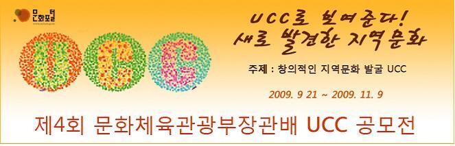 전국의 숨겨진 지역문화를 발굴하기 위해 '제4회 문화체육관광부장관배 UCC 공모전'을 개최한다. 이번 공모전은 'UCC로 보여준다! 새로 발견한 지역문화'라는 슬로건으로 전국 각 지역의 문화, 예술, 관광, 생활 등 다양한 분야의 숨어있는 문화를 발굴해 지역문화의 소개를 활성화하고 사라져가는 우리 문화에 대한 사회적 관심을 제고해 문화정보에 대한 일반인 및 지역주민의 접근성을 높이는데 초점을 두고 있다.