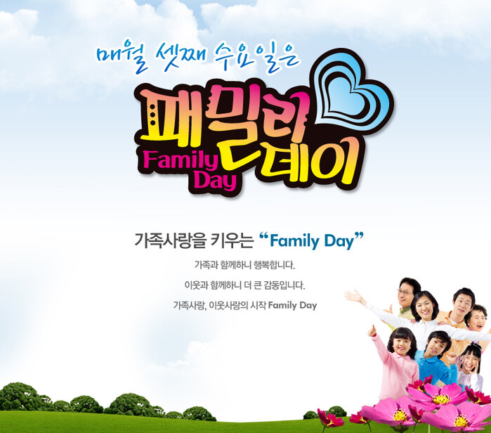 한편 가족끼리 모여도 함께 할 수 있는 프로그램이 TV시청 외에는 거의 없다는 지적에 따라 10월 21일 첫 실시되는 '패밀리데이'에는 가족이 모여서 함께 할 수 있는 다양한 활동이 마련될 예정이다.