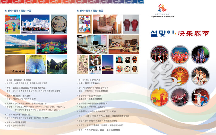 이번 축제는 올 1월 8일부터 1월 11일까지 세종문화회관 미술관과 대극장에서 펼쳐질 한중 전통문화 전시와 양국 합동 축하공연으로 구성된다. 미술관에서 개최될 전시회에서 한국은 전통연, 한지공예, 짚공예, 민화(호랑이), 전통탈과 전통음식 전시와 체험, 그리고 태권도와 각종 관광자원을 선보이며, 중국은 그림자극, 전지공예, 전통 자수와 함께 중국 여러 지역에 대한 관광정보를 제공한다.
