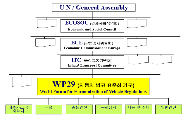 본 연구의 총괄 기관은 UN 산하의 자동차 법규 표준화 기구(WP29)이며 연구를 통해 개발된 표준 공인 시험방법은 각 국 정부 간의 논의를 거쳐 국제기술표준(GTR)으로 제정된다.