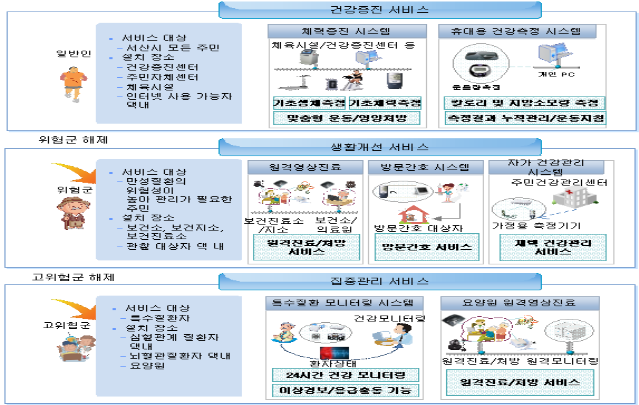 -환자가 병원을 직접 방문하지 않고 혈압·심전도 등 생체정보를 측정·전송하면, 원격지 의사가 영상을 통해 환자의 상태를 파악하고 원격진료·건강관리서비스 제공
