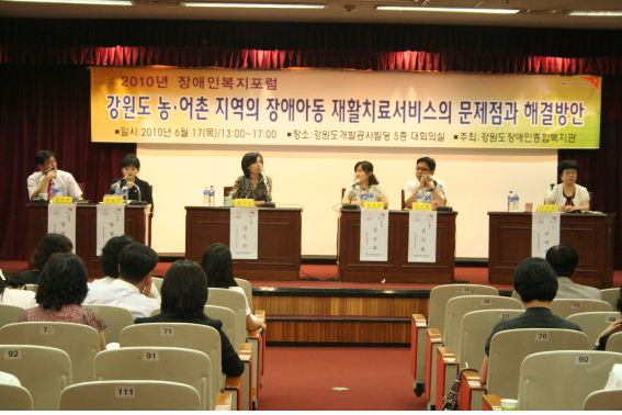 ‘강원도 농· 어촌지역의 장애아동 재활치료 서비스 제공의 문제점과 해결방안’이라는 주제로 강원도개발공사빌딩 5층 대회의실(춘천시소재)에서 17일‘2010년 장애인복지포럼’을 개최했다.