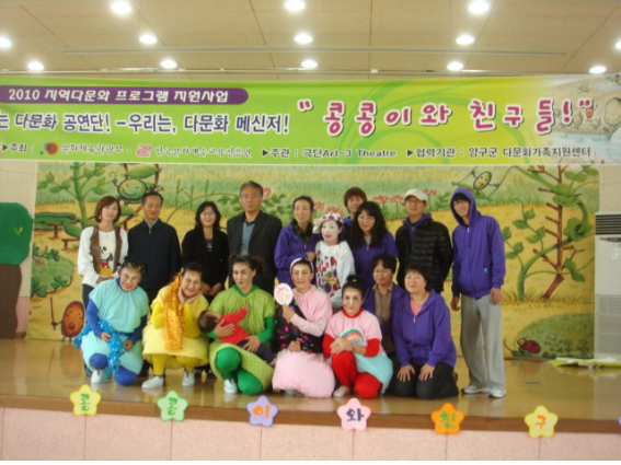 [시사투데이 김준 기자] 양구군 다문화가족지원센터(유근영 센터장)는 지난 5월부터 다문화 가족 10여명이 모여 연극을 통한 한국어를 습득 훈련을 통해 연극봉사단을 구성해 ‘콩콩이와 친구들’이란 첫 작품을 관내 초등학교 대상으로 순회공연을 순탄하게 실시했다고 7일 밝혔다.