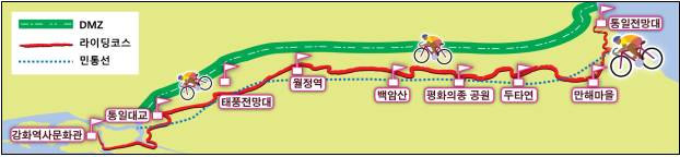 11일 고성 통일전망대에서 출발하는 ‘평화누리길 체험단’은 인제, 화천, 철원, 파주를 거쳐 15일 강화군 역사문화관까지 4박 5일 동안 평화누리길 주변에 산재한 통일전망대, 백담사, 두타연, 평화의 댐 등 다양한 문화유산과 자연경관을 느끼면서 신나는 자전거 라이딩을 하게 된다.
