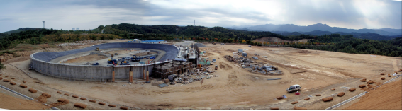 사이클 경기장 조성사업은 현재 성토부 보강토 옹벽, 사면보호 등 부지조성사업을 마치고 건축 구조물 공사, 우수관로 매설, 피스타 성토 및 성형작업이 진행되고 있어 사이클 경기장 윤곽이 속속 들어나고 있다.