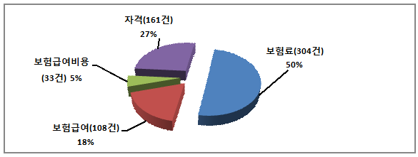 전체 이의신청 606건 중 피부양자 및 가입자 자격 등에 관한 이의신청은 161건으로 전년 같은 기간 대비 19건(13.4%)이 증가했다. 이는 일용 근로자들의 권익보호 및 고액의 지역보험료 회피 방지를 위한 최근 사업장 지도점검 강화에 따른 직장가입자 자격 소급 취득 및 상실에 기인한 것이라고 공단은 분석했다.