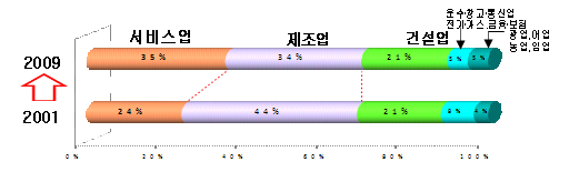 업무 및 직종, 고용형태가 다양한 서비스업은 대부분 영세하거나 소규모여서 재해예방의 관심에서 벗어나 있었고 재해예방을 위한 직접적인 기술지원도 어려웠던 것이 사실이다. 그러나 산업구조가 제조업에서 서비스업으로 변화하면서 서비스업 산업재해는 지속적으로 증가했으며, 2009년에는 서비스업 재해자가 제조·건설업을 추월, 가장 높은 비중을 차지했다.