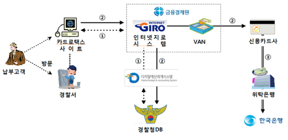 이번 조치로 종전에는 은행창구나 가상계좌 및 지로사이트를 이용해 현금 수납만 가능하던 것이 도로교통법 개정을 통해 국세와 마찬가지로 인터넷으로도 신용카드를 이용해 납부할 수 있게 됐다. 단 수수료는 국세와 동일하게 납부자가 1.2%를 부담해야 한다.